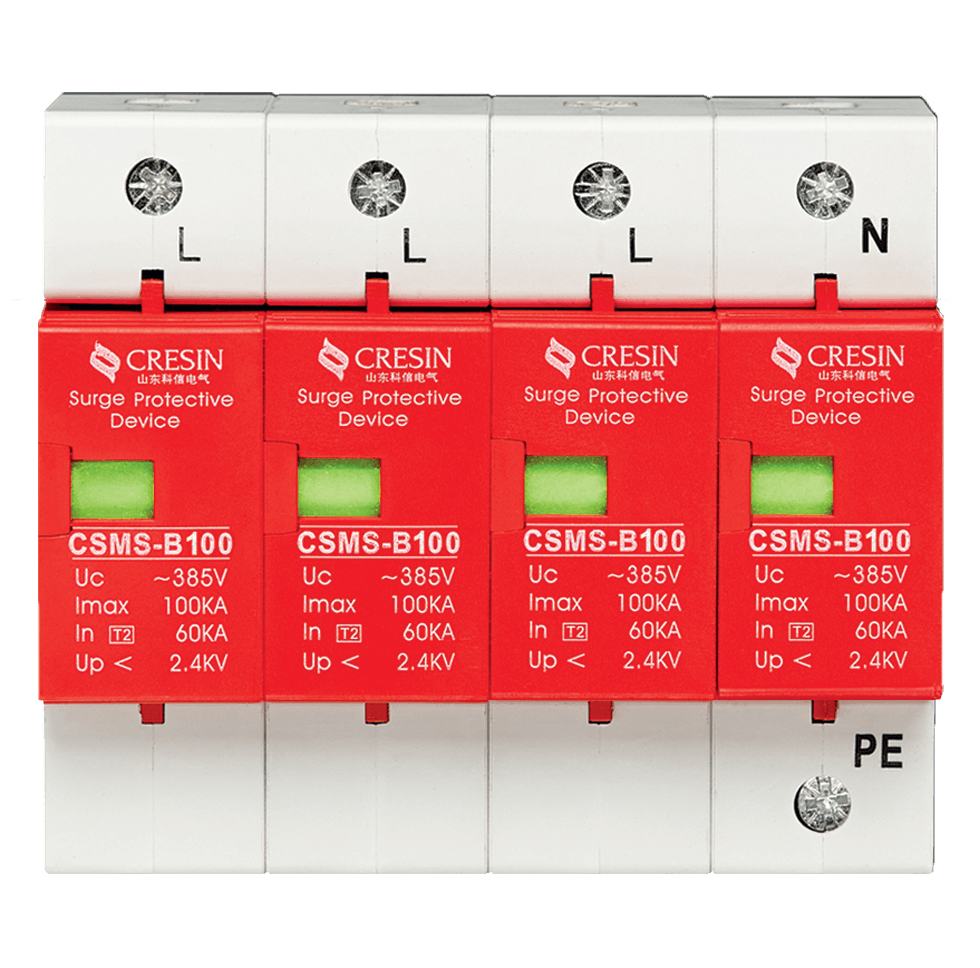 CSMS‐B100 系列浪涌保護(hù)器(電涌保護(hù)器)是依據(jù)GB18802.1、IEC61643-1 防雷標(biāo)準(zhǔn)設(shè)計(jì),適用交流 50Hz,220v/380v 及以下的TN-S、TN-C-S、TT、IT 等供電系統(tǒng),每個(gè)模塊的標(biāo)稱放電電流In 可達(dá)60kA(8/20μs), 最大放電電流 Imax 可以達(dá)到 100kA(8/20μs),通過國(guó)家專業(yè)檢測(cè)機(jī)構(gòu)的雷電防護(hù) II 類試驗(yàn),適用于雷擊風(fēng)險(xiǎn)較高地區(qū)(LPZ2 或 LPZ2 與LPZ3 交界區(qū)),可應(yīng)用于交流電源系統(tǒng)的二級(jí)防雷保護(hù)。