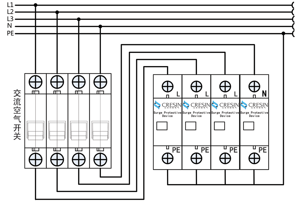二、安裝時(shí)請(qǐng)根據(jù)接線示意圖所示連接,其中L1、L2、L3為相線,N為零線,PE為接地線;