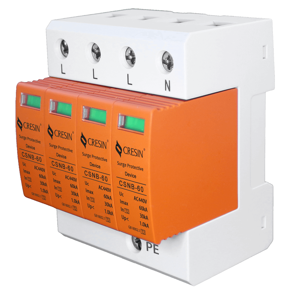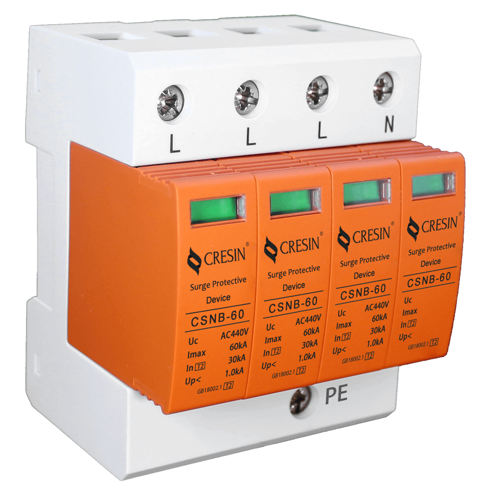 CSNB-60 系列浪涌保護(hù)器(電涌保護(hù)器)是依據(jù) GB18802.1、IEC61643-1 防雷標(biāo)準(zhǔn)設(shè)計(jì),適用交流 50Hz,220v/380v 及以下的TN-S、TN-C-S、TT、IT 等供電系統(tǒng),每個(gè)模塊的標(biāo)稱放電電流In 可達(dá)30kA(8/20μs), 最大放電電流 Imax 可以達(dá)到 60kA(8/20μs),通過(guò)國(guó)家專業(yè)檢測(cè)機(jī)構(gòu)的雷電防護(hù) II 類試驗(yàn),適用于雷擊風(fēng)險(xiǎn)較高地區(qū)(LPZ2 或 LPZ2 與 LPZ3 交界區(qū)),可應(yīng)用于交流電源系統(tǒng)的二級(jí)防雷保護(hù)。