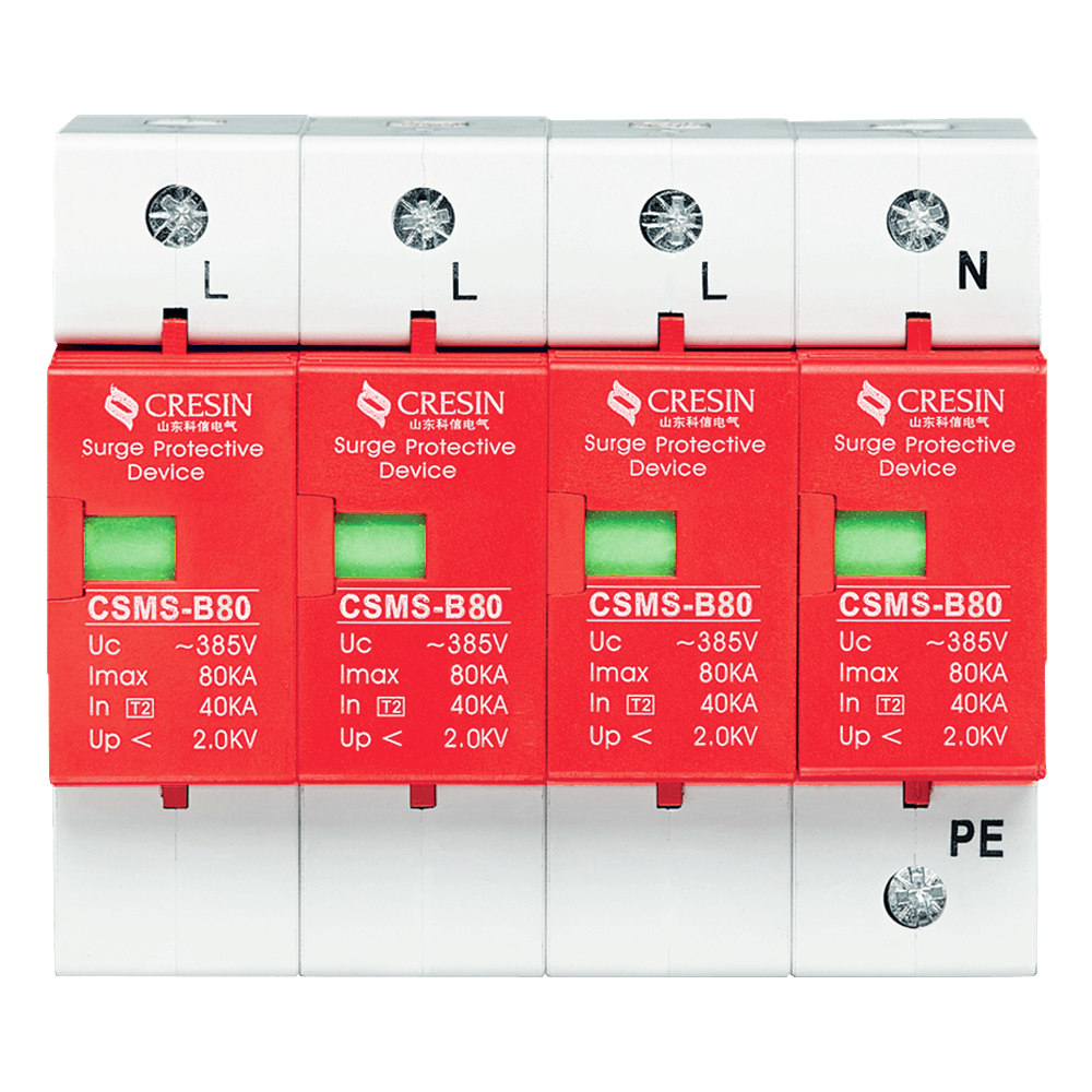 CSMS-B80系列浪涌保護(hù)器(電涌保護(hù)器)是依據(jù)GB18802.1、IEC61643-1防雷標(biāo)準(zhǔn)設(shè)計(jì),適用交流50Hz,220v/380v及以下的TN-S、TN-C-S、TT、IT等供電系統(tǒng),每個模塊的標(biāo)稱放電電流In可達(dá)40kA(8/20μs),最大放電電流Imax可以達(dá)到80kA(8/20μs),通過國家專業(yè)檢測機(jī)構(gòu)的雷電防護(hù)T2級試驗(yàn),適用于雷擊風(fēng)險較高地區(qū)(LPZ1或LPZ1與LPZ2交界區(qū)),可應(yīng)用于交流電源系統(tǒng)的一級、二級防雷保護(hù)。通過防雷系統(tǒng)前、后級防雷器的配合,使雷電能逐級釋放 ,達(dá)到保護(hù)配電電源及終端用電設(shè)備的目的。