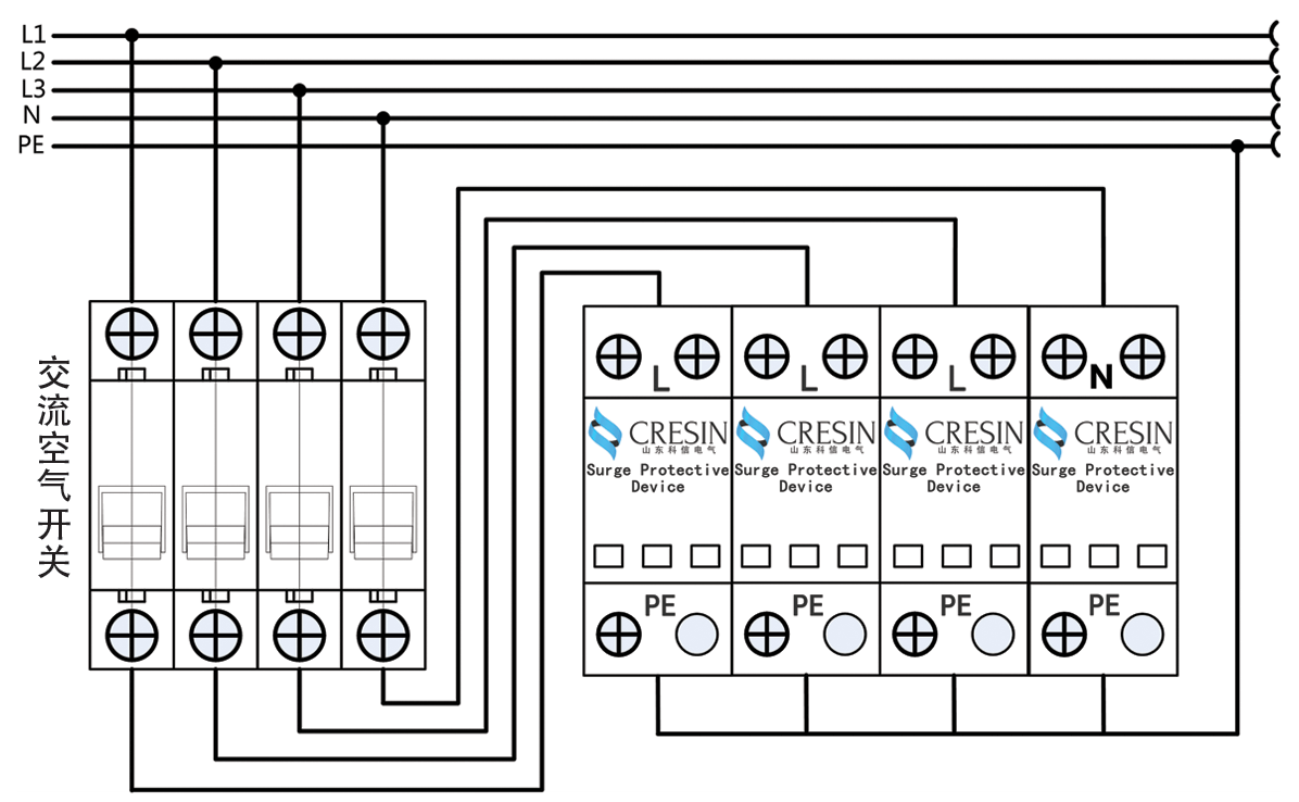 二、安裝時(shí)請(qǐng)根據(jù)接線示意圖所示連接,其中L1、L2、L3為相線,N為零線,PE為接地線;