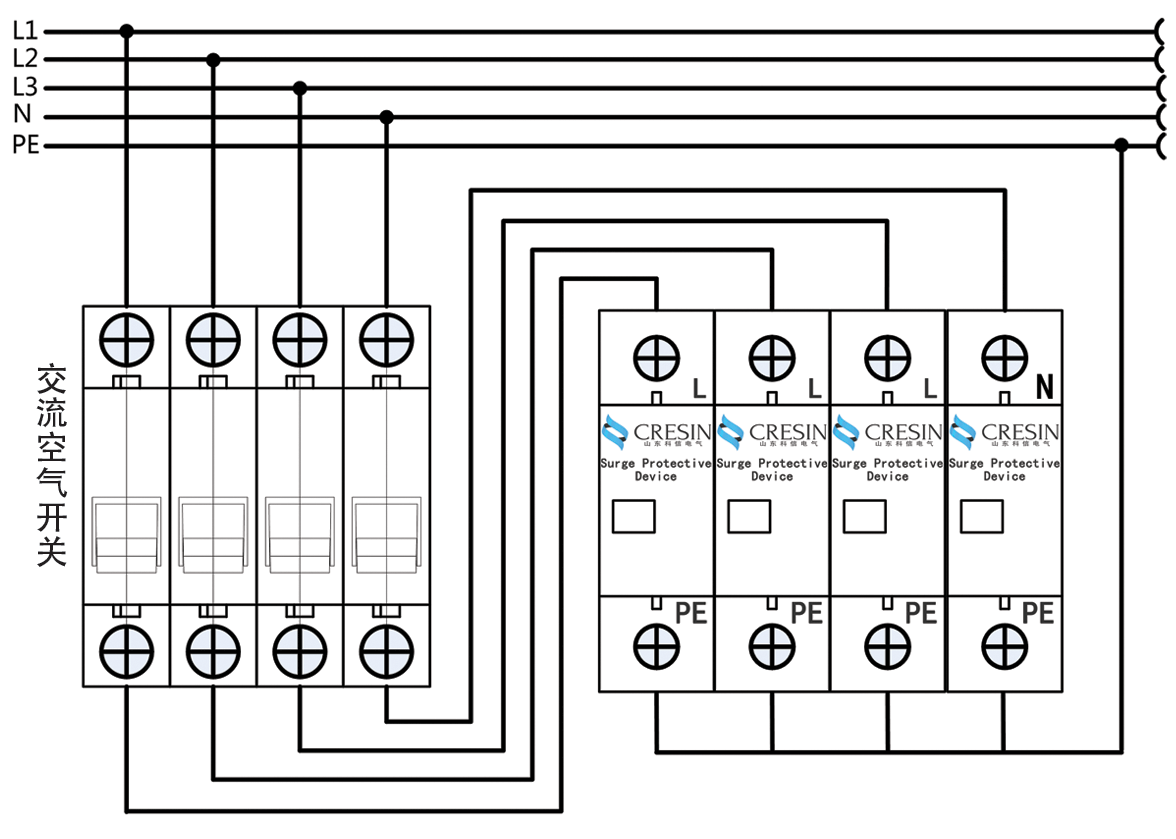 二、安裝時(shí)請根據(jù)接線示意圖所示連接,其中L1、L2、L3為相線,N為零線,PE為接地線;