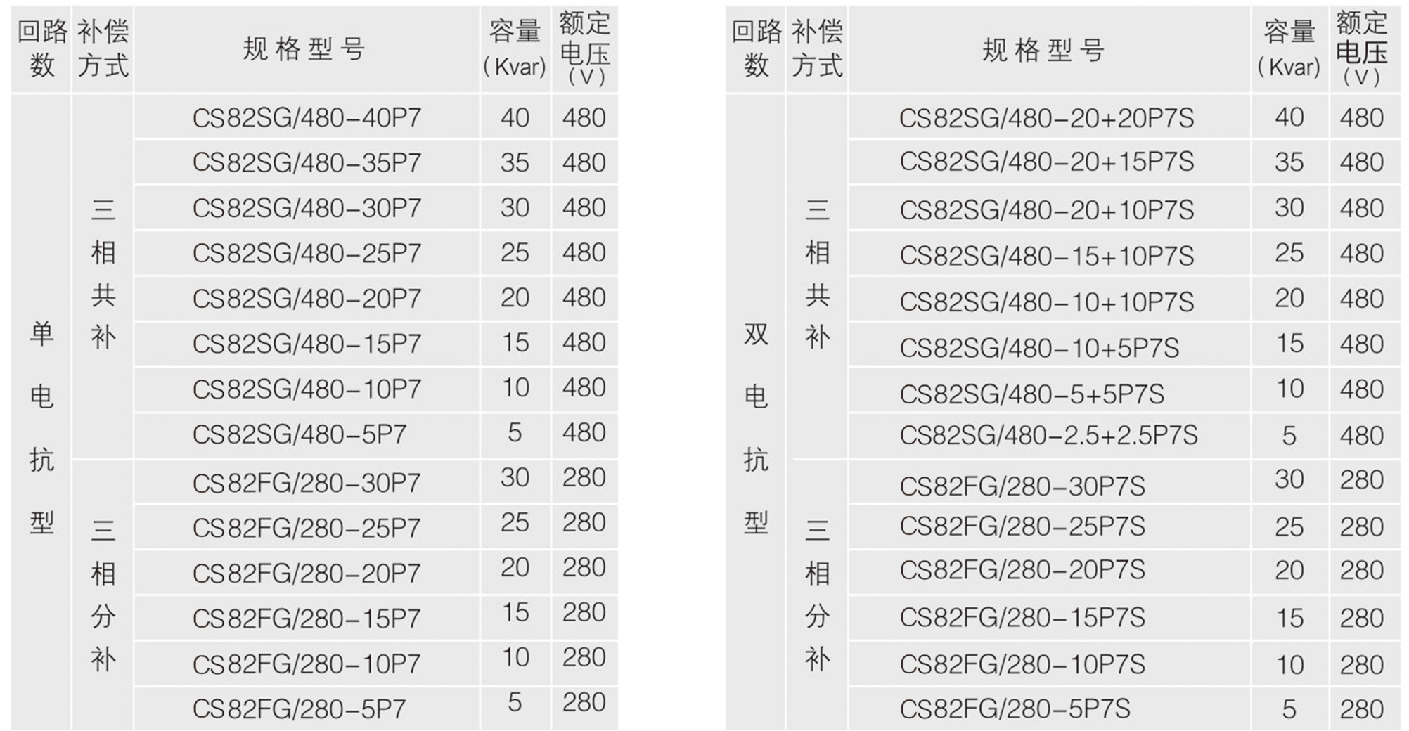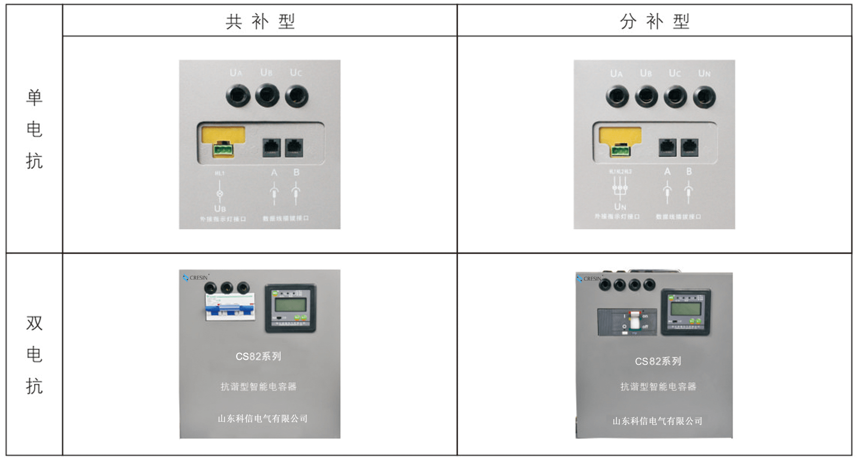按照補償回路數(shù)及串電抗個數(shù):分為單電抗型和雙電抗型,見下圖產(chǎn)品外觀示意:
